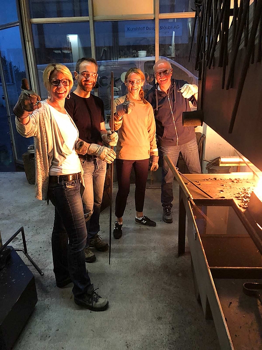 Später am Abend folgte das Nachtessen. Jackie bekochte unser Team und wir genossen das feine Abendessen mit angeregten Gesprächen. Das Team bedankt sich beim Vorstand für diesen Ausflug. Es war eine lehrreiche Erfahrung, die Kunst des Schmiedens kennen zu lernen. Einfach war es nicht, doch wir freuen uns alle auf die Skulptur in unserem Büro, die wir zusammen erstellt haben.