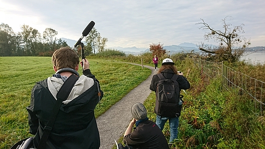 Morgens um 08:40 Uhr begann das Shooting. Von der Chollermüli, zum Schutzengel bis hin zum Pulverturm und wieder zurück auf die Geschäftsstelle. Das waren die Locations für den Tag. Julian Kaufmann, einer unserer Lernenden, welcher im Film mitwirkte, berichtet: