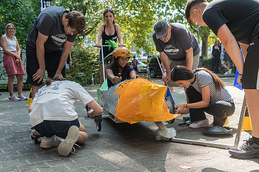 Zu den Höhepunkten der Woche gehörte das Bauen von Seifenkisten am Dienstag. Beim Bau von fahrtüchtigen Seifenkisten wurden die Fähigkeiten Kommunikation, Organisation und Konzentration gefördert. Gute Teamarbeit ist ein weiterer wichtiger Bestandteil für diese Aufgabe. Diese Fähigkeiten sind auch für eine erfolgreiche Berufslehre wichtig. Das abschliessende Rennen sorgte für Begeisterung und Teamgeist, denn die Lernenden feuerten sich gegenseitig lautstark an und feierten gemeinsam ihre Erfolge. Nach dem Mittag wurden ihnen wichtige Infos zu ihren Rechten und Pflichten sowie zur Business Knigge mit auf den Weg gegeben.