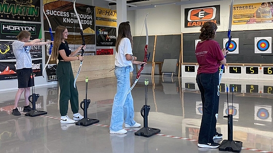 Am nächsten Tag folgte mit dem Ausflug zu Strebel Bogensport in Sempach eines der Highlights der Woche. Gemeinsam übten sich Lernende und Berufsbildner einen Vormittag lang im Bogenschiessen. «Beim Bogensport ist das Ziel, die goldene Mitte der Scheibenauflagen zu treffen. Das Fokussieren auf ein Ziel erfordert Konzentration, Ruhe und Geduld. Eigenschaften, die auch für eine erfolgreiche Berufslehre wichtig sind» schildert Andrea Iten, Bereichsleiterin Verbund.
