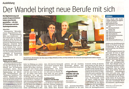 Auch der Gewerbeverband des Kantons Zug hat auf Seite 7 in der neuen Ausgabe des Magazins «Wirschaft Zug» vom neuen Lehrberuf berichtet.