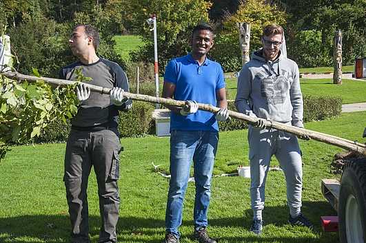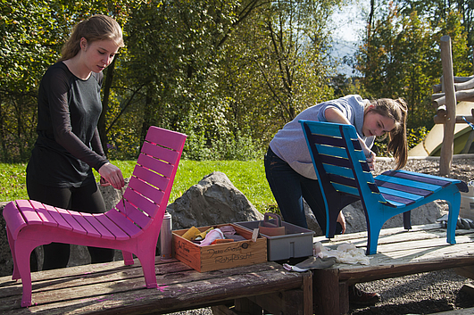 Die Lehrlinge arbeiteten an zwei verschiedenen Orten, dem Kinderspielplatz ‘Robinson’ und dem Schwimmbad Lättich. «Zu erst hatte ich so einige Bedenken, musste aber nacher zugeben, dass es doch nicht so schlimm ist. Am Schluss ist man stolz auf sich selber, da man sehen kann, was man alles gemacht hat.», sagte eine Teilnehmerin. Das stimmt – der Robinson-Spielplatz wurde liebevoll für den Winter vorbereitet. Bänke wurden geschleift und neu Angemalt, Gras gemäht, Hänge von Gestrüpp befreit. Im Lättich kann man nächsten Sommer unter zwei neuen Bäumen Schutz vor der Sonne suchen und den Chinaschilf beobachten, wie er im Wind weht.