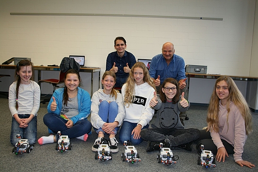 «wir haben einen Mindstorm-Roboter zusammengebaut und programmiert, das war mega cool. Ich weiss jetzt, was ich mir zu Weihnachten wünsche», das ist die Stimme eines Mädchens aus dem Workshop 1.